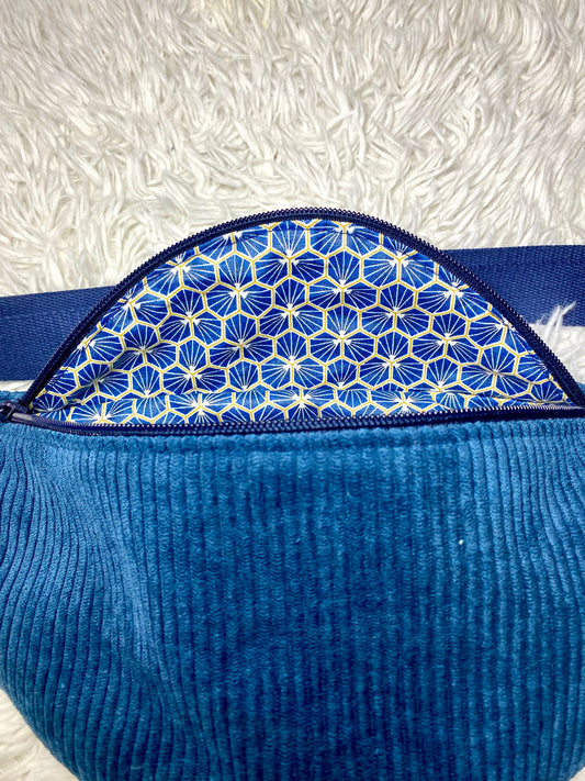 Sac banane velours côtelé marine