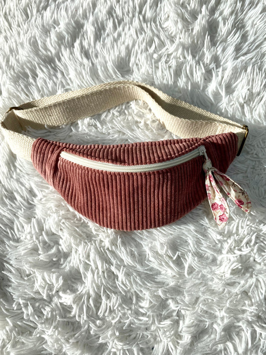 Sac Banane enfant velours côtelé vieux rose