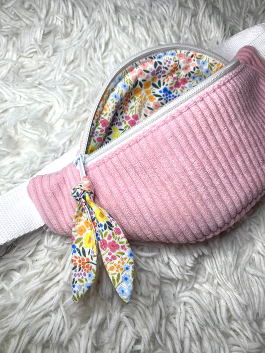 Sac banane enfant velours côtelé rose pâle