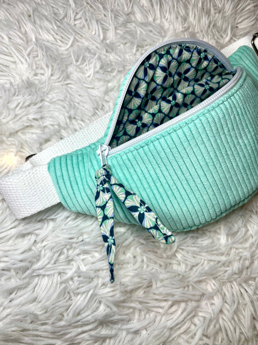 Sac banane enfant velours côtelé vert menthe