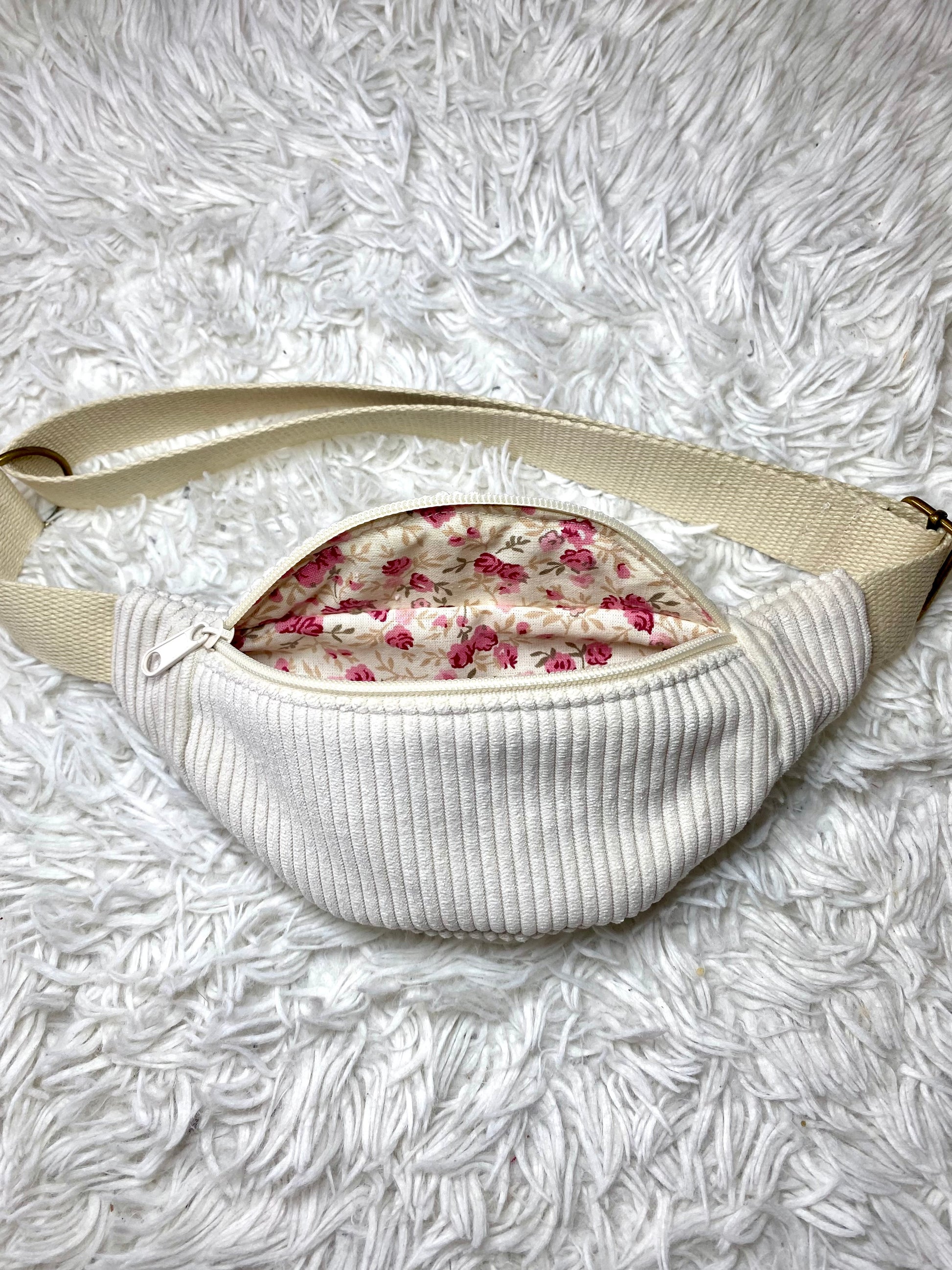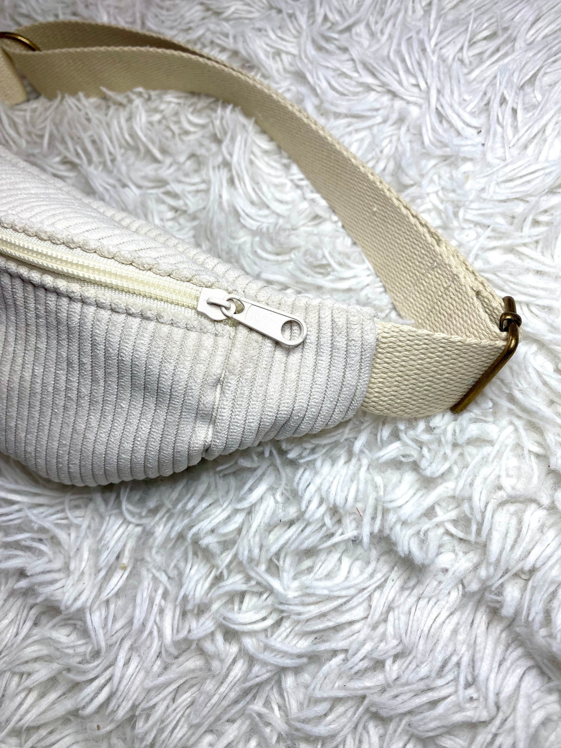 Sac banane enfant velours côtelé blanc cassé